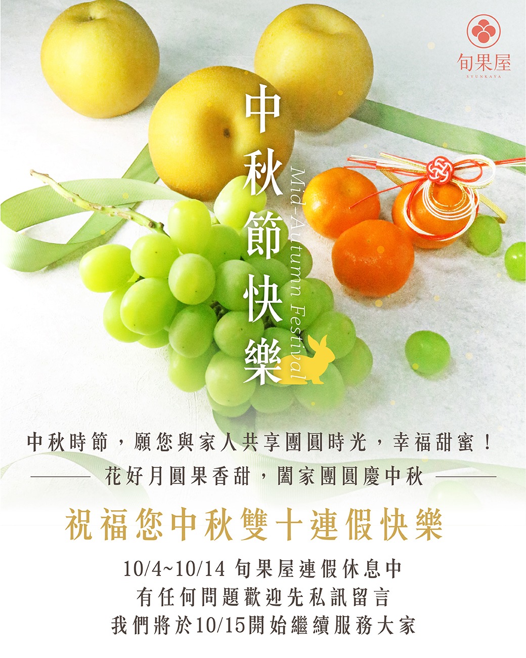 2025年荀果五中秋節および重慶節休業のお知らせ
