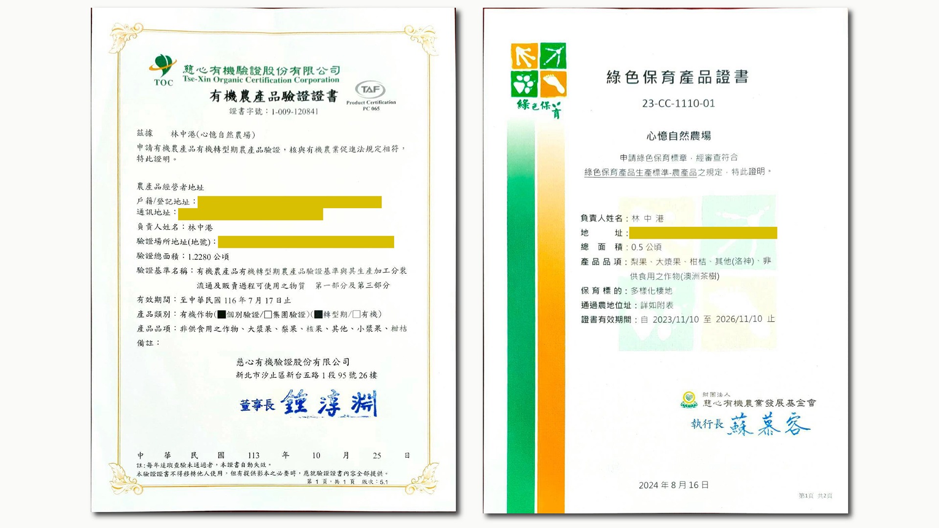 【Natural Creation | Committed to Friendly Farming, No Pesticides】 Linzhonggang adheres to natural farming methods, respecting the growth rhythm of crops and avoiding reliance on pesticides or chemical fertilizers, allowing plums to thrive naturally in the soil. While this farming method is time-consuming, each fruit retains its purest flavor, showcasing the dedication of the land and the farmers. Xinyi Natural Farm currently holds Organic Transition Period Certification (Certificate No.: 1-009-120841), Green Conservation Product Certification (Certificate No.: 23-CC-1110-01), and Friendly Leopard Cat Farming Certification (Certificate No.: 23-CC-1110-01).