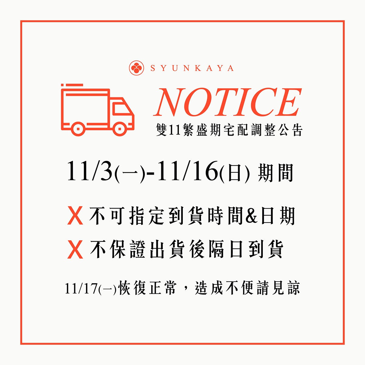 自 11/3(一)起至 11/16(日),宅配服務調整如下:
